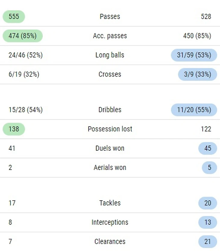 А также на показатели всей команды («Ливерпуль» в левой колонке):