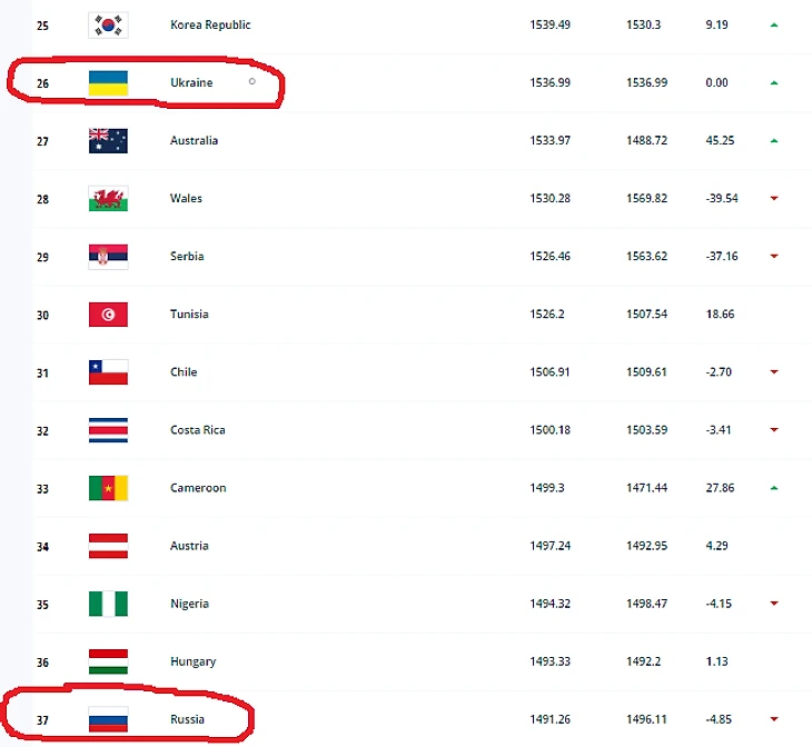 На конец декабря прошлого года Россия несмотря на отсутствие серьёзной практики расположилась на неплохом для себя 37-ом месте, но всё равно до Украины ей далеко, которая на 11 строчек выше.