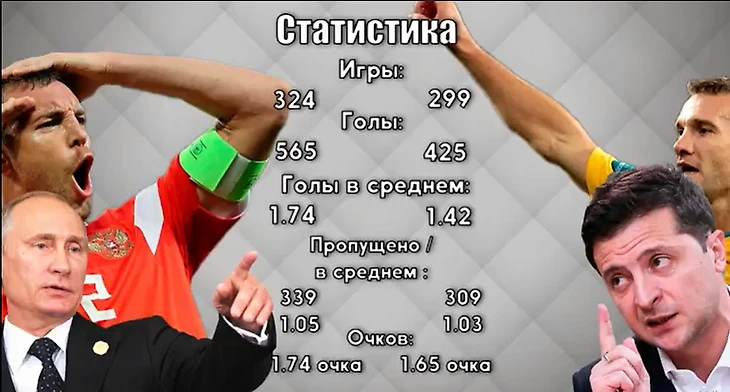 За свою чуть более 20-летнюю историю сборная Россия сыграла 324 игры, в которых забила 565 голов (в среднем 1.74 гола за игру). Украина в свою очередь провела на 25 встреч меньше, в которых отличилась 425 раз (в среднем это на 32 сотых похуже чем у России), но зато у «жовто-блакитных» лучше дела обстоят со средним значением пропущенных голов. Если же смотреть на то, сколько очков набирают обе сборные, то Россия, пусть и не намного, но опережает своего оппонента.