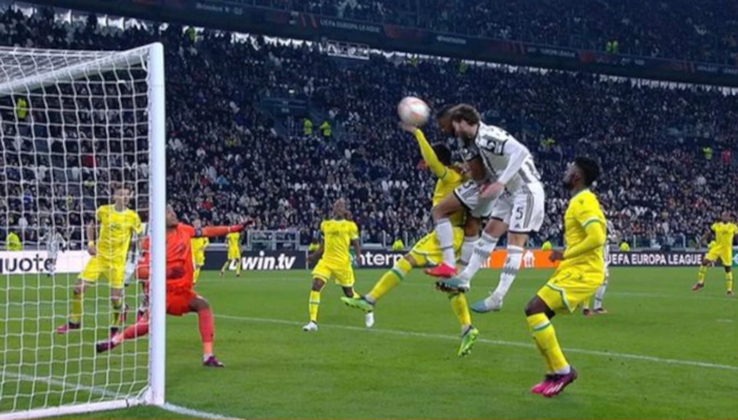 Неделю назад в матче «Ювентус» - Нант» на последних добавленных минутах произошел всем известный «спорный» эпизод с ударом головой Бремера. Арбитр после просмотра эпизода с помощью системы VAR зафиксировал фол со стороны защитника «Юве» (опирался руками на плечи соперника при ударе по мячу).