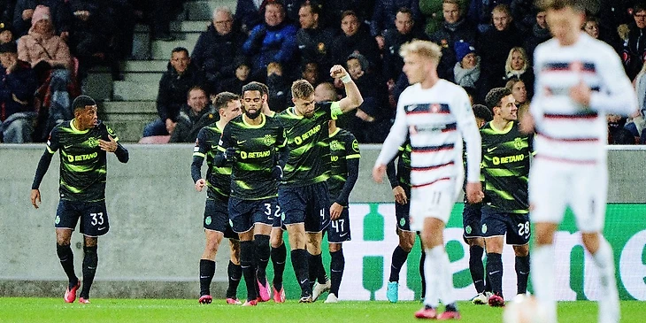 В 1/16 попался Митьюлланд. Первая встреча в Португалии завершилась ничьей 1-1. А вот вчера команда Рубена Аморима выиграла в гостях со счётом 4-0, не оставив ни единого шанса датской команде.