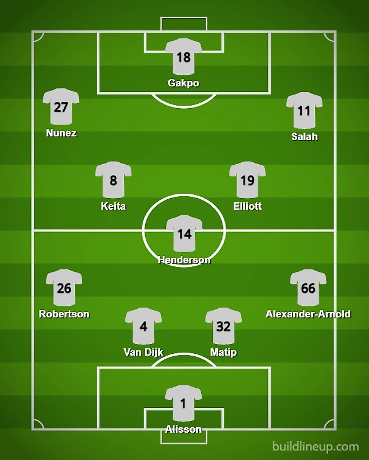 «Ливерпуль» не может рассчитывать на Тьяго, у которого травма бедра, Луиса Диаса, у которого травма колена, Калвина Рэмси, который выбыл до конца сезона из-за операции на колене.