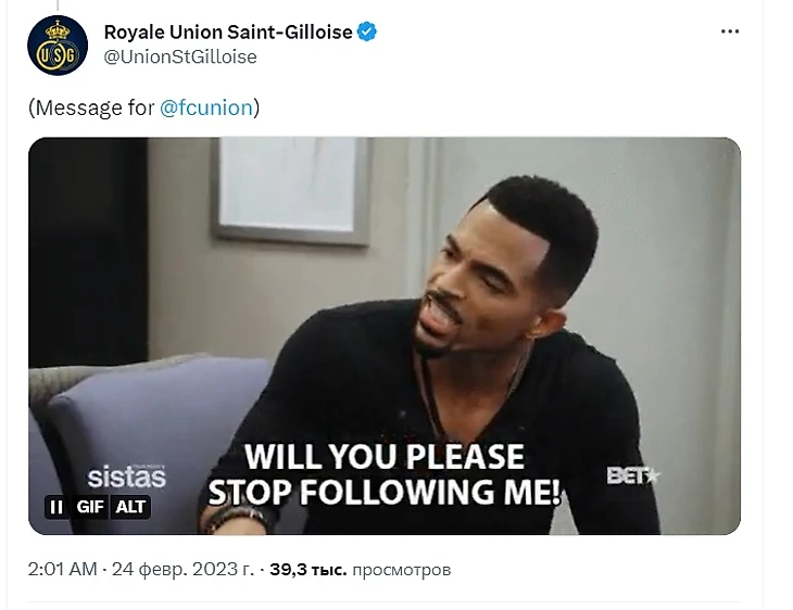 А в аккаунте «Юниона» появилась гифка-послание для тезки из Берлина: «Пожалуйста, прекрати меня преследовать!»