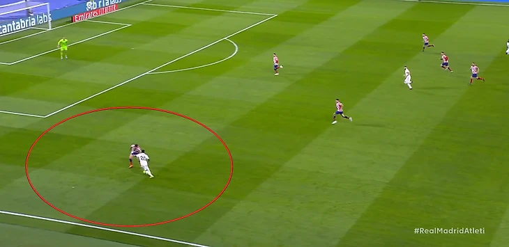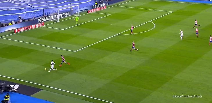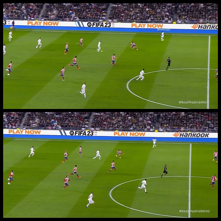 Команде Симеоне нередко удавалось прерывать контратаки соперников. После возврата мяча игроки «Реала» старались как можно быстрее найти Винисиуса, но линия паса на него была закрыта.