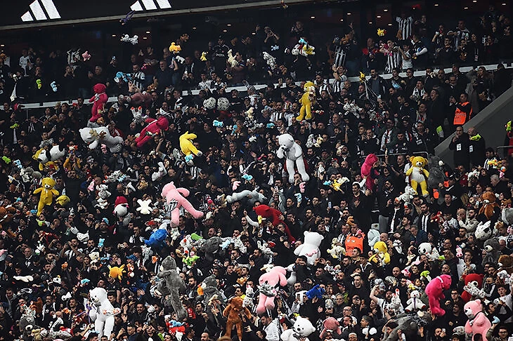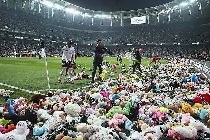 Поле в мягких игрушках – постарались фанаты «Бешикташа» и «Антальяспора». Все отправят детям, пострадавшим от землетрясений
