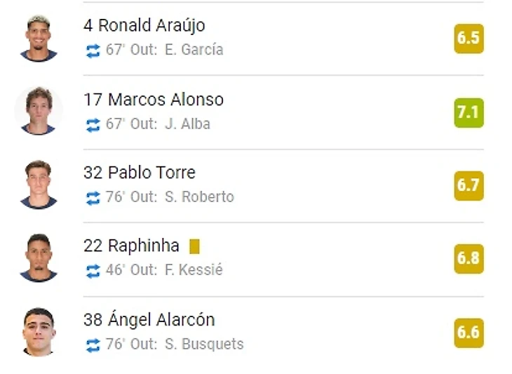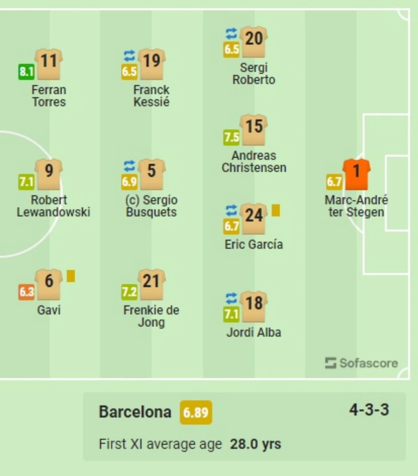 По версии портала SofaScore лучшим игроком каталонского коллектива стал Ферран Торрес, который создал большинство моментов для своей команды.
