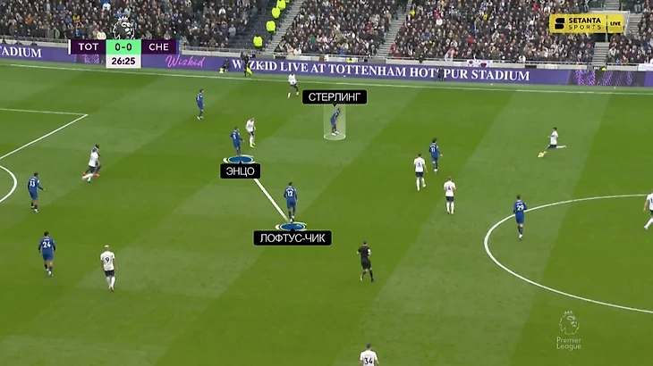 Энцо пытался подчищать на фланге Рахима, но в результате возникали разрывы между опорниками «Челси». «Тоттенхэм» не слишком виртуозно за это наказывал, но какие-то полумоменты получал:
