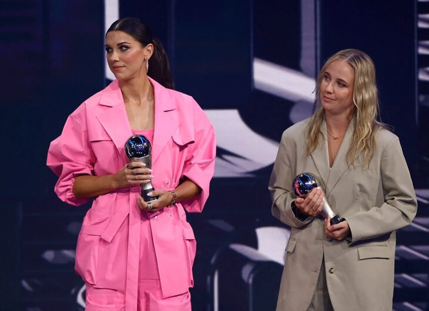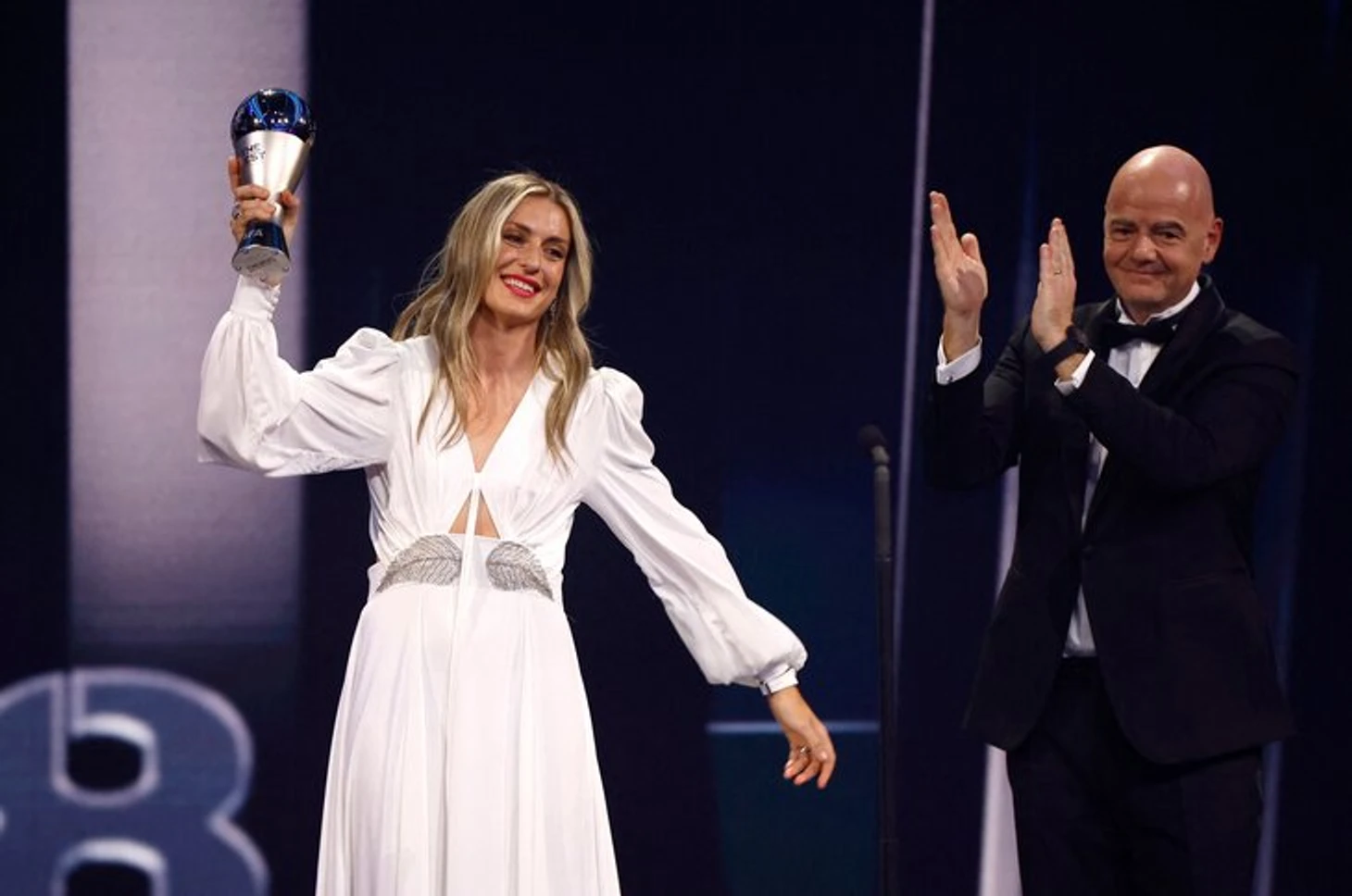 А вот Алексия Путельяс из «Барселоны» второй год подряд стала лучшей футболисткой мира. Но какое же у нее нежное платье!