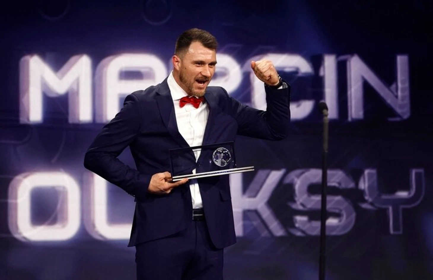 Поляк Марчин Олекси получил премию Пушкаша за лучший гол и очень смущался на сцене. Но все же отпраздновал.