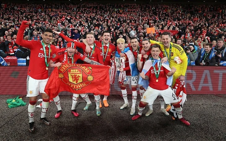 «Манчестер Юнайтед» - победитель Кубка Английской лиги! Тен Хаг проделал колоссальный объем работы, чтобы болельщики «красных дьяволов» вновь отправились на «Уэмбли» в качестве непосредственных участников торжества. Клуб также не остался в стороне: на сиденьях «Уэмбли» для каждого болельщика был подготовлен шарф с символикой «МЮ», что придало еще больше красного цвета в матче.