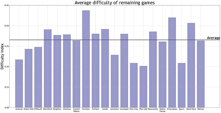 Также журналист определил среднюю сложность оставшихся матчей для команд. Получилось, что из претендентов на четверку самые сложные календари у «Ливерпуля» и «Ньюкасла», тогда как у остальных − ниже среднего.