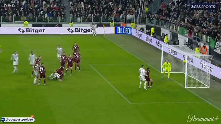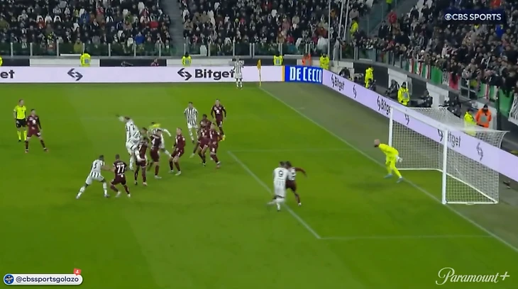 Капитан перевисел в воздухе Карамо, мяч попал в штангу, отлетел в ворота, где его отбил перед собой вратарь «Торино» Ваня Милинкович-Савич.