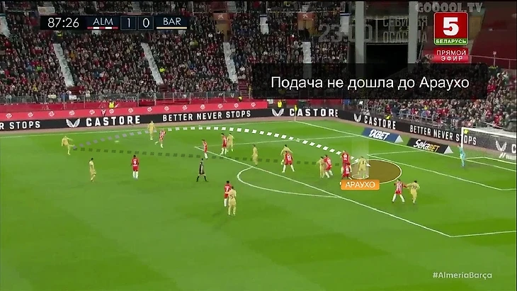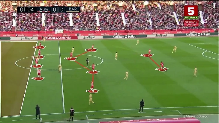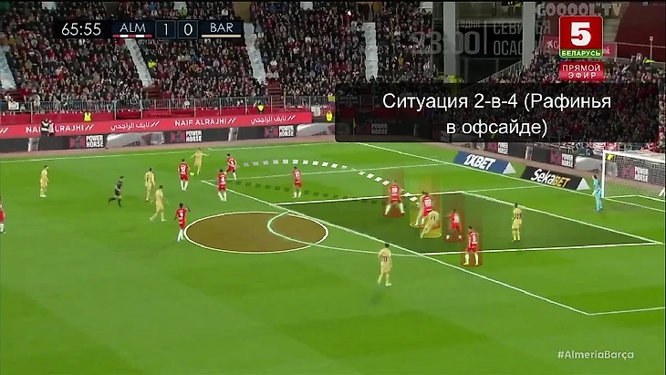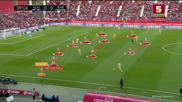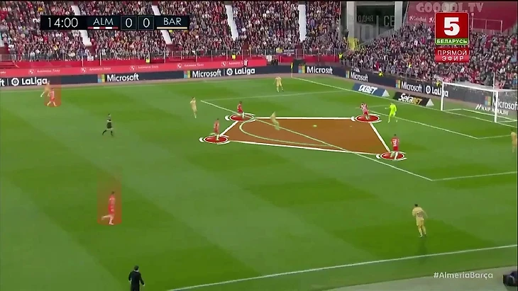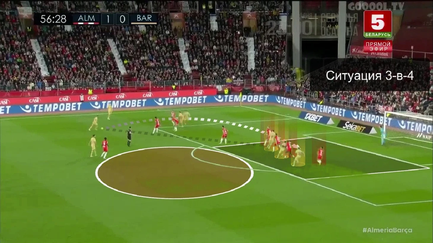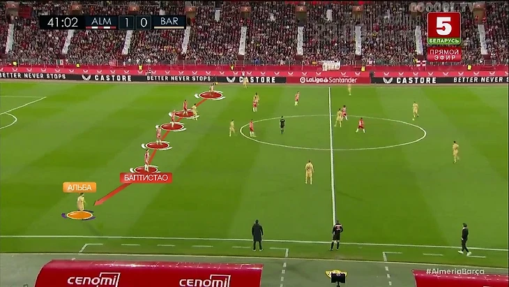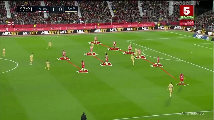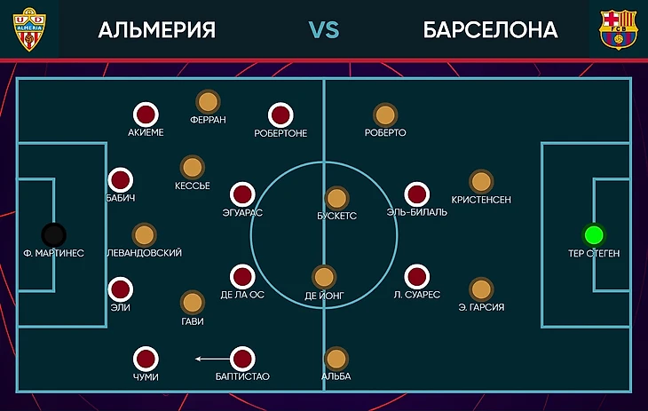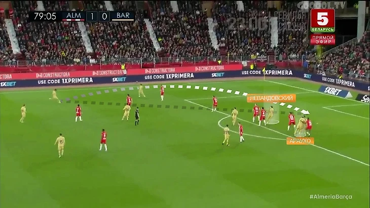 Это было важным составляющим, потому что в предыдущем туре против «Кадиса» (2:0) Ферран провёл просто блистательный матч в роли вингера под изоляции и его постоянно «кормили» переводами с противоположного фланга. «Альмерия» неплохо контролировала «Барсу» в этом компоненте, но в низком блоке совсем избежать потенциально опасных ситуаций не получилось.