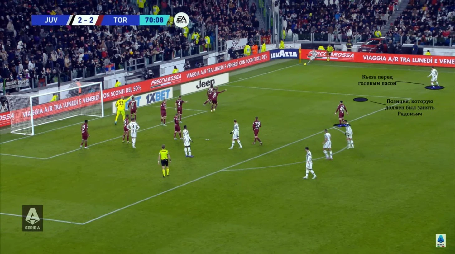 А вчера ошибка Радонича стоила «Торино» решающего пропущенного. Именно он должен был накрывать Кьезу. Но не выполнил установку. Из-за него рухнула вся защита.
