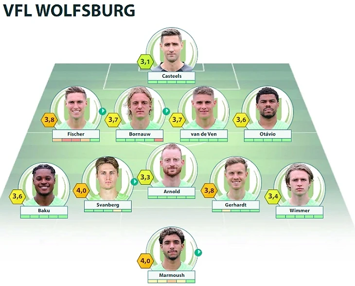 У "Вольфсбурга" в этом чемпионате забито уже 40 мячей. За весь предыдущий накопилось 43 гола