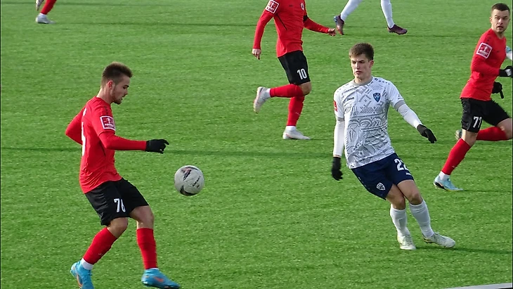 Красно-белые очень уверено вышли на первую встречу и сразу много атаковали, и это давление вылилось в единственный гол, который издали забил Пруцев. Железнодорожники также старались создавать моменты, но безрезультатно.