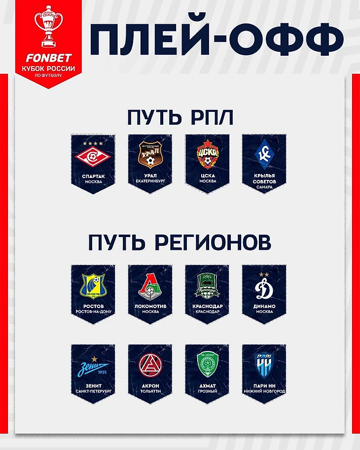 Сегодня состоится жеребьевка дальнейших стадий Кубка, в прямом эфире Матч ТВ. Сеять будут 12 оставшихся команд: