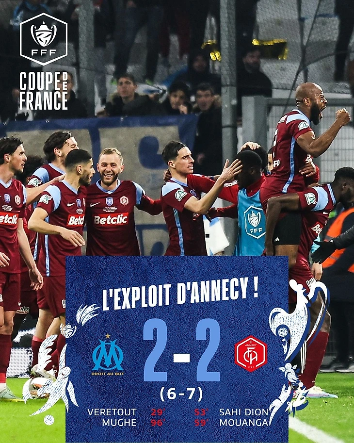 «Марсель» проиграл «Анси» в серии пенальти и вылетел из Кубка Франции. Клуб из середины таблицы Лиги 2 будет играть в полуфинале.