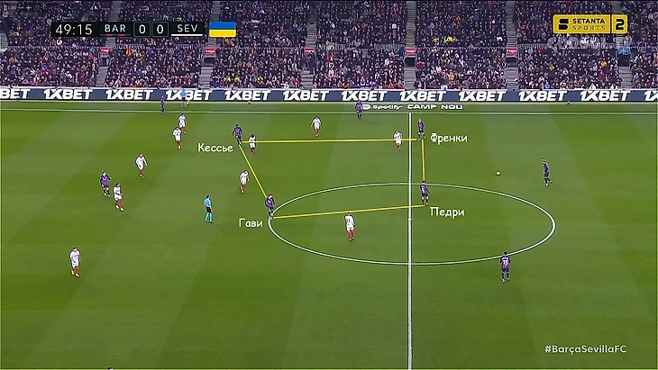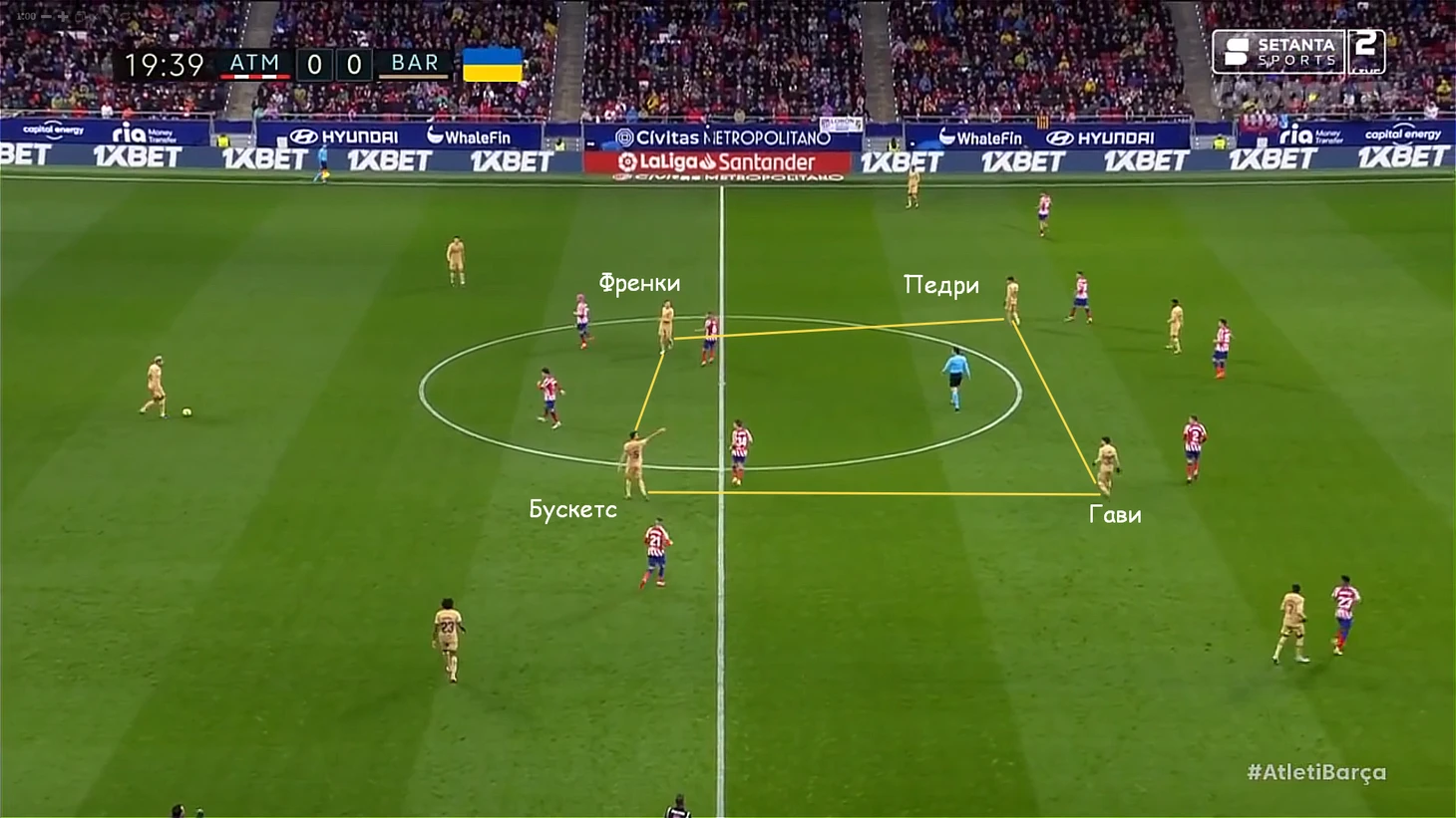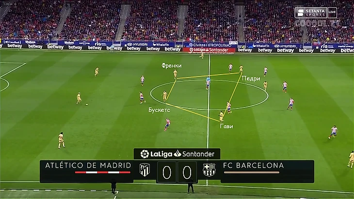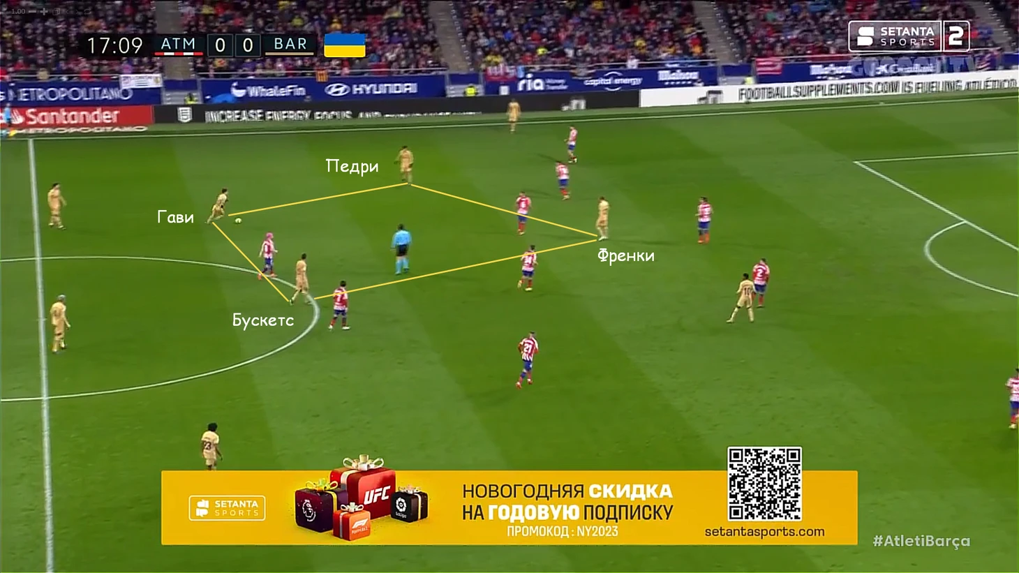 После паузы на чемпионат мира Хави нашёл новый вариант наполнения состава, где номинально слева в атаке выходил Педри/Гави, но фактически действовал как четвёртый полузащитник, опускаясь в центр поля. Впервые мы увидели такой вариант в матче с «Атлетико». Тогда Педри вышел левее, но за счёт расположения в середине поля в первые полчаса помог команде придавить соперника и забить гол. Действия «Барселоны» в оставшийся час игры вызывали вопросы, но интересную идею мы увидели уже тогда.