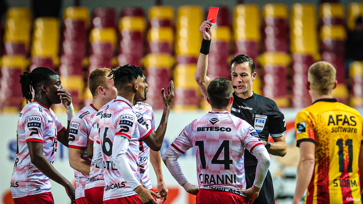 В конце первого тайма защитник «Зюлте» сбил Схофса подкатом. Главный арбитр Брам ван Дриссхе показал ему желтую карточку, но после вмешательства бригады VAR, которой руководил Николя Ляфорж, заменил на красную.
