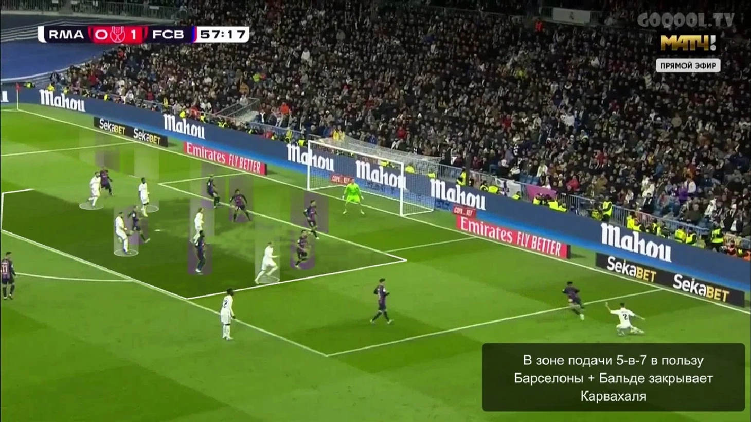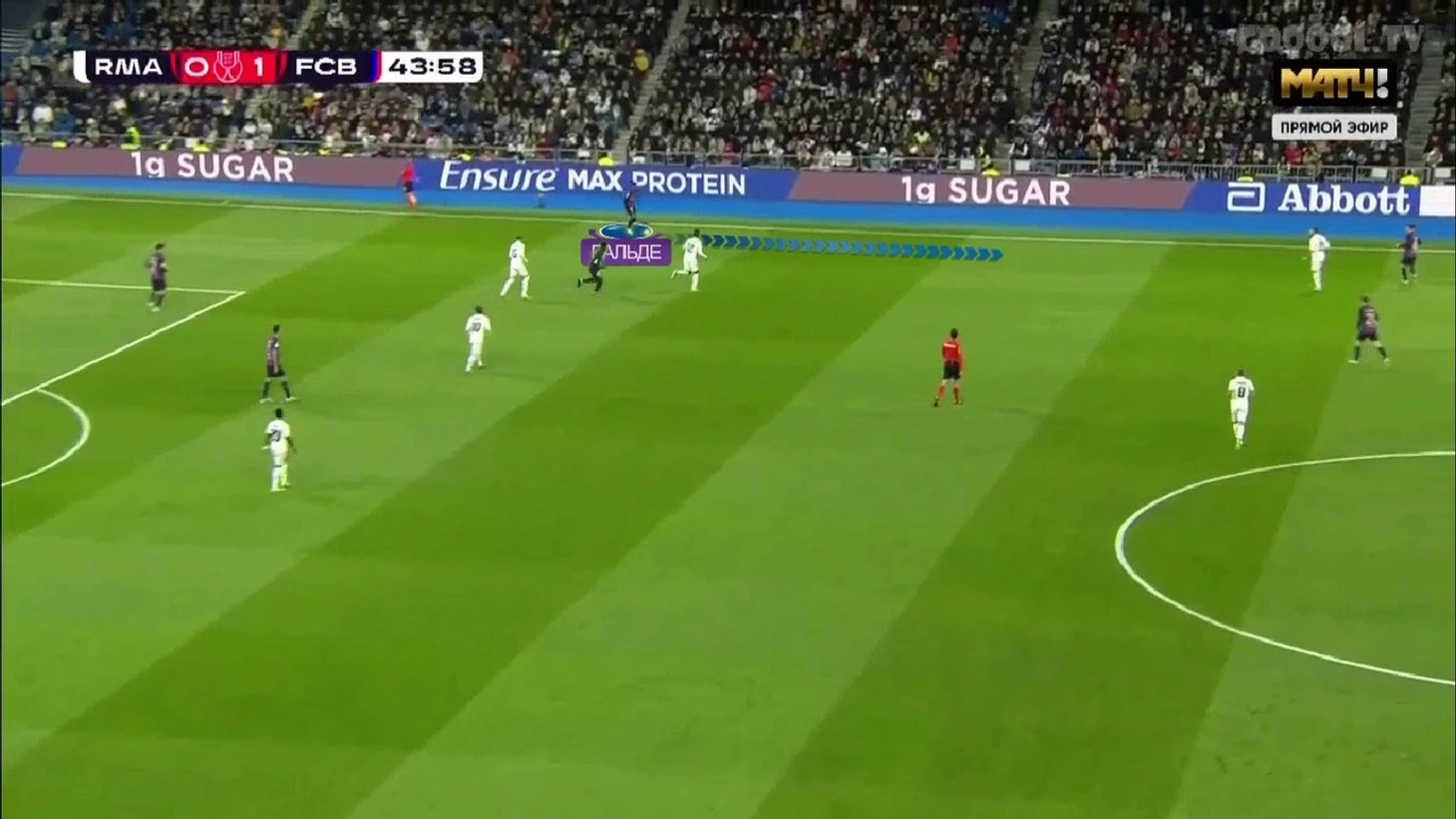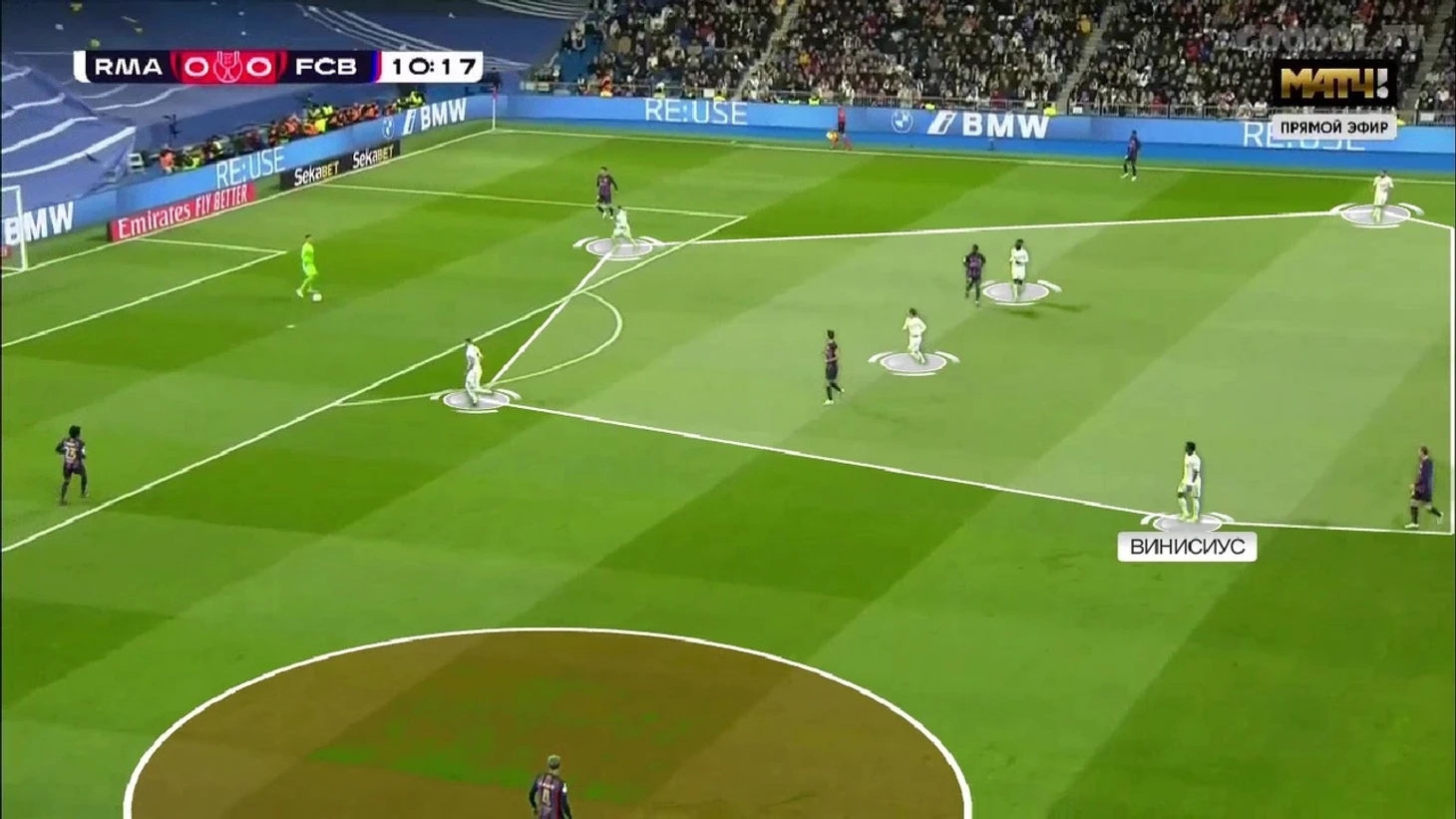 Но обычно переводы с фланга на фланг «Барселоне» не особо удавались, так как в зоне мяча «Реал» создавал высокую интенсивность: