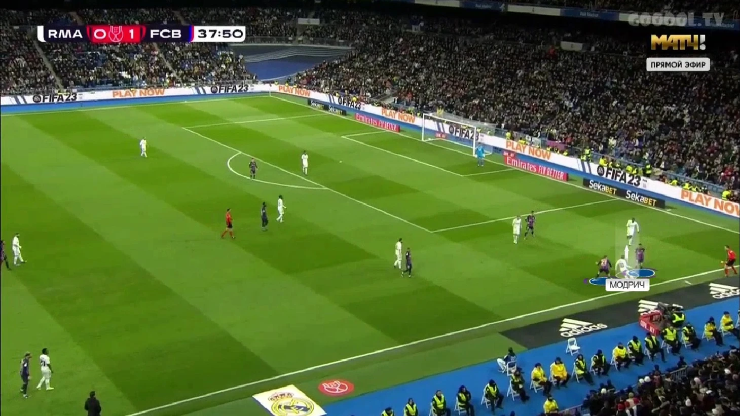 А вот в этой ситуации так запрессинговать уже не получилось – в дело вмешался Лука Модрич. Сначала «Барселона» так же создаёт 1-в-1 в зоне мяча: