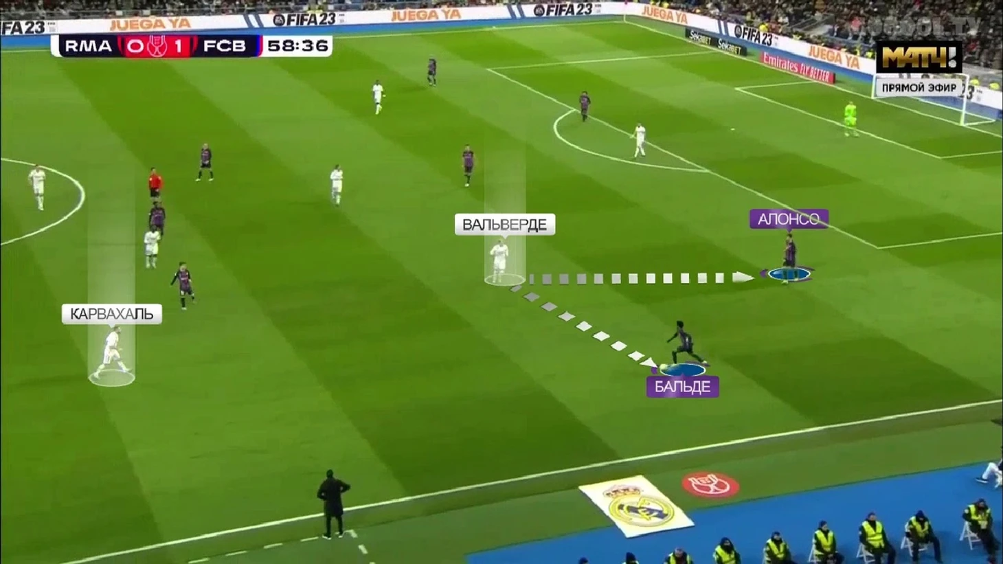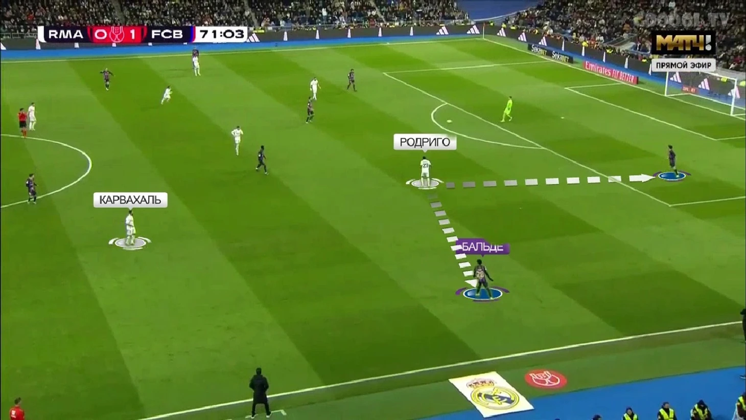 «Мадрид» предоставил «Барселоне» больше свободы на обоих флангах – теперь Вальверде переключался между Алонсо и Бальде, а Карвахаль чаще оставался в более осторожной позиции: