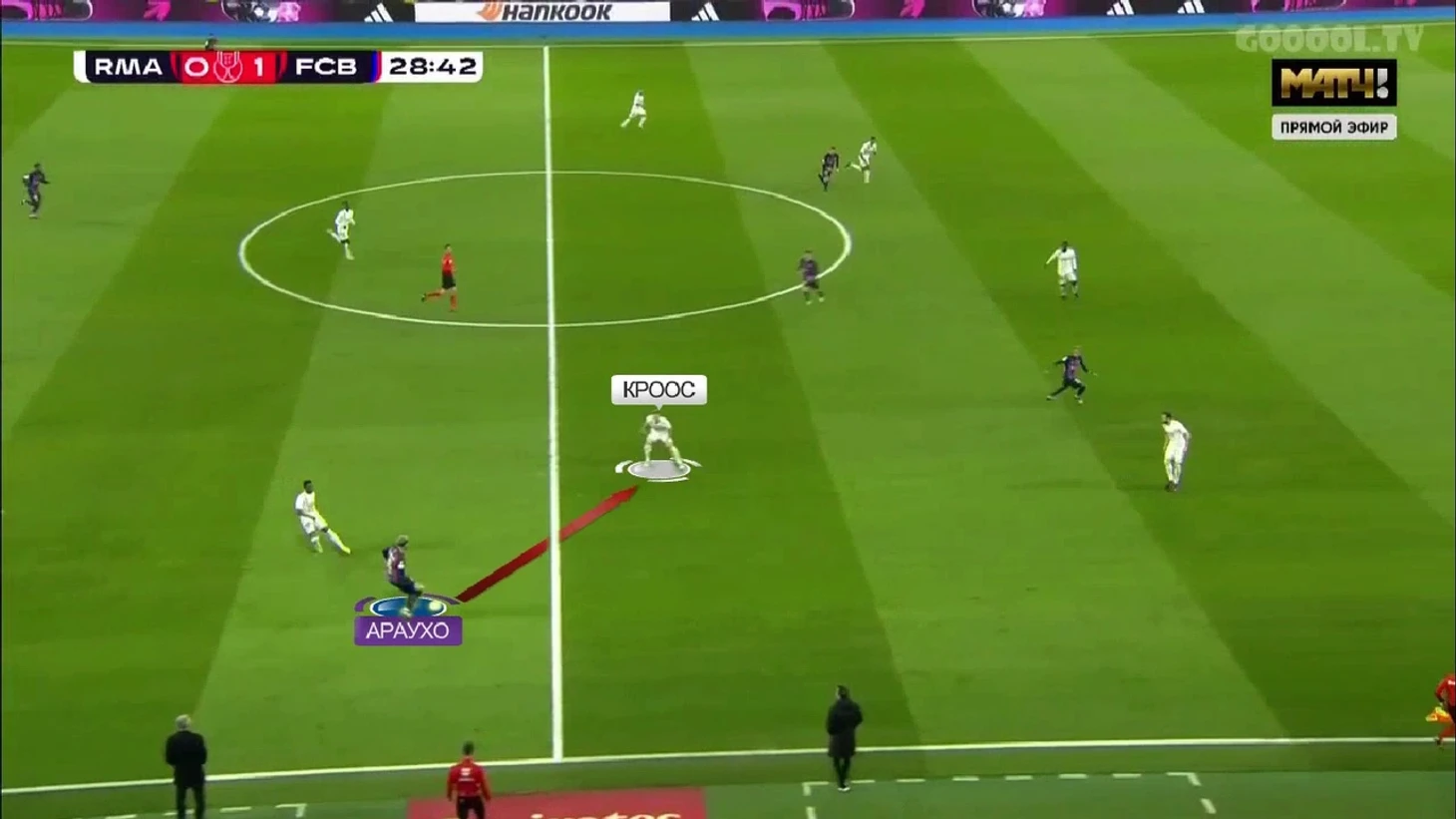 Но даже в этом примере становится очевидно, почему «Реал» решил, что свобода Араухо не приведёт к серьёзным последствиям – Рональд просто подарил мяч Кроосу: