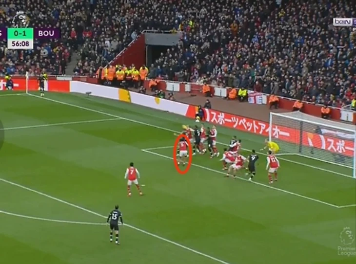 Уже при начале навеса Парти потерял Сенеси, и из-за этого Арсенал пропустил гол.