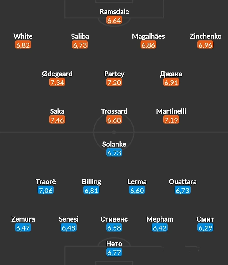 Вот в таких составах Арсенал и Борнмут начинали свой матч.