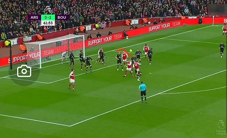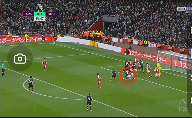 Смит-Роу выигрывает верховую борьбу и скидывает на дальнюю штангу ворот и если посмотреть по этой фотографии не скажешь, что Парти вообще будет учавствовать в этом моменте.