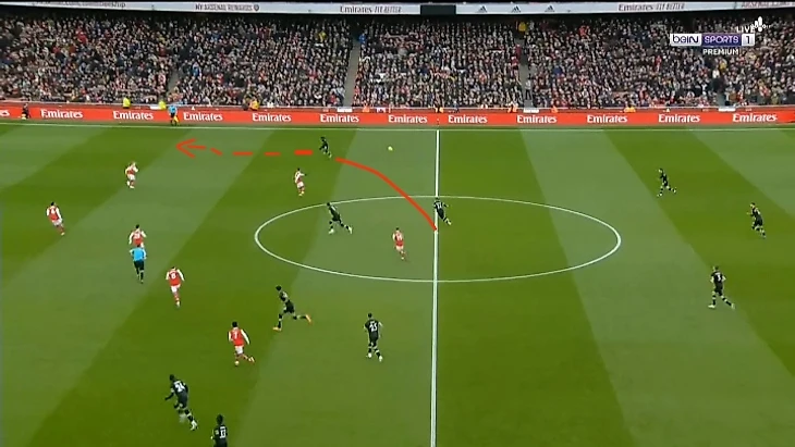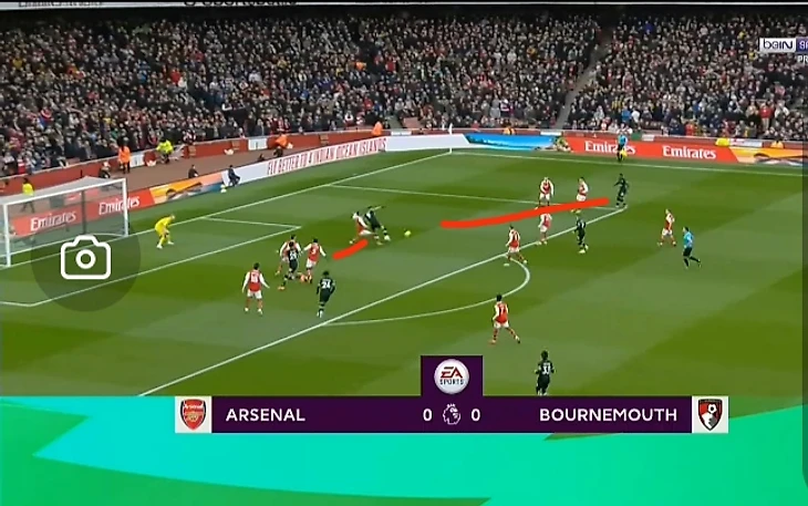 После того как игрок пробежал (извините не знаю как его зовут), он отдал проникающий пас на 9 номера игрока Борнмута и он же в свою очередь отдал изысканный пас пяткой.