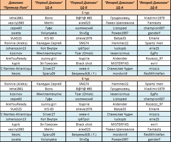 Расписание 5-го и 6-го туров: