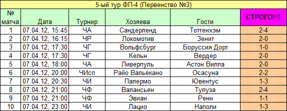 Дедлайн для 5-го тура - 07.04.2012,  СУББОТА,  15.20