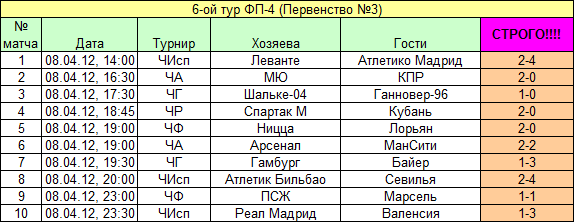 Дедлайн для 6-го тура - 08.04.2012, ВОСКРЕСЕНЬЕ, 13.30