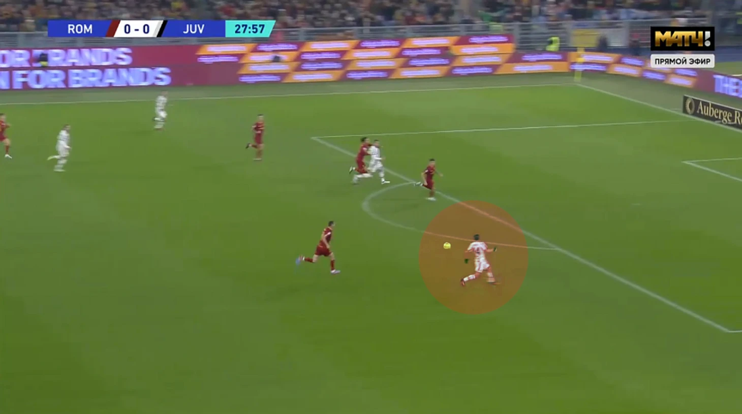Также стоит отметить, что Лоренцо Пеллегрини персонально играл по Локателли, что часто деформировало последнюю линию в схеме «Ромы». Возможно, целью данного решения Моуринью была попытка ограничить опасность, которую мог бы создавать полузащитник «Ювентуса»: Мануэль — один из лидеров команды числу прогрессивных передач и пасам в финальную треть (по обоим показателям он уступает лишь Данило).
