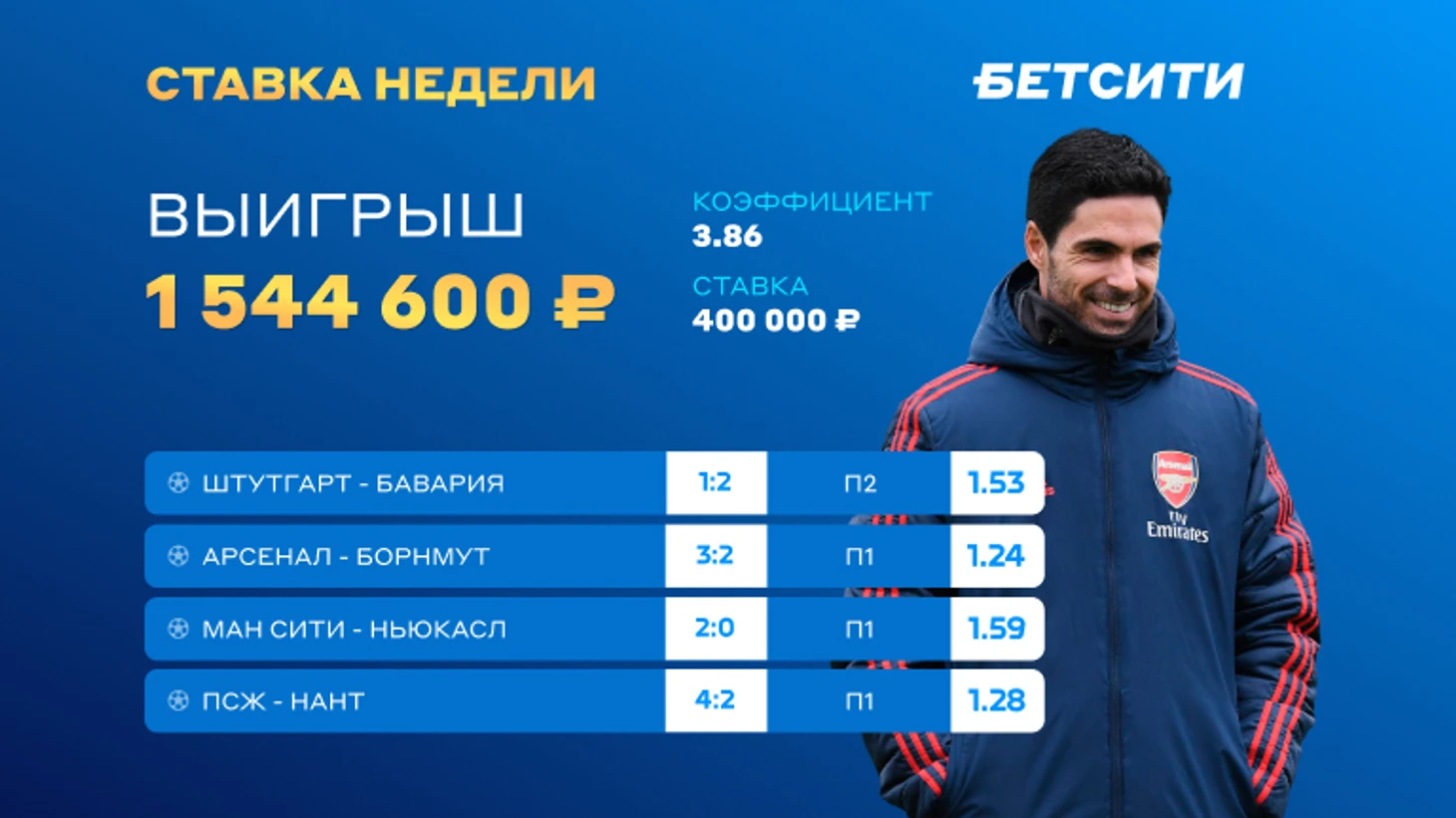 Камбэк «Арсенала» принес более 1.5 млн ₽ игроку БЕТСИТИ!