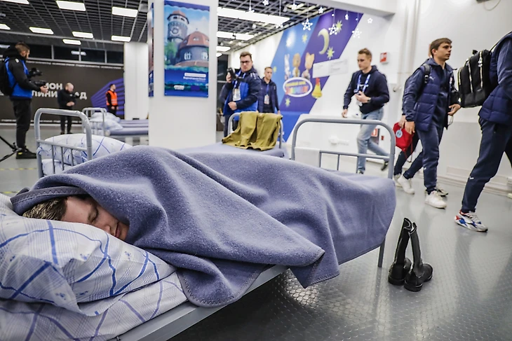 Усилить тему колыбельных мотивов Балтийцы решили армейской фишкой. Если кто-то забыл, то мы напомним, что СКА расшифровывается как Спортивный Клуб Армии. В холле стадиона «Калининград» разместились... настоящие армейские кровати, привезенные из казармы одной из местных воинских частей. Военная форма, ремни, сапоги, вафельные полотенца и спящий солдат — погружение в атмосферу армии на все 200%