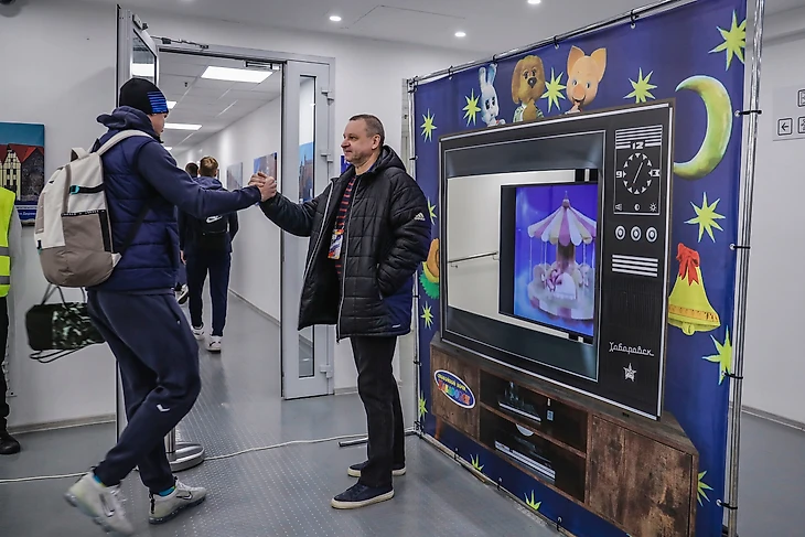 Однако главную фишку никто не угадал, хотя тема и была во многом на поверхности. Да, соперник в этот раз на запад России прибыл не с Дальнего Востока, а из Антальи, где часовой пояс отличается от Калининграда всего на час. Но не обыграть восьмичасовую разницу во времени для медийщиков «Балтики» было бы непростительной ошибкой. «Спокойной ночи, Хабаровск» — именно эта фраза встречала соперника в зоне приезда команды, там же, разумеется, и трио главных героев знаменитой передачи.