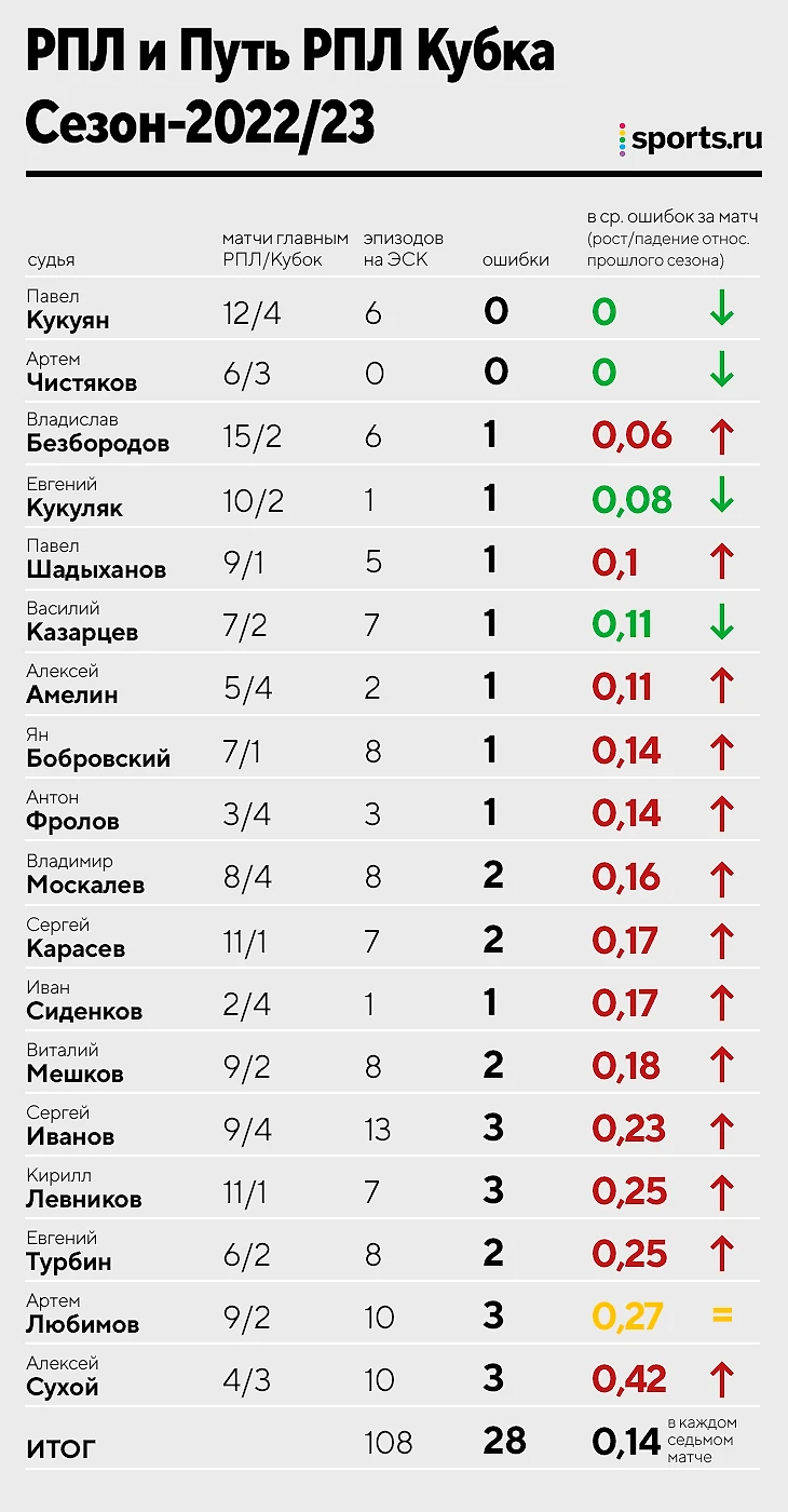 Большинство судей ошибается чаще, чем в прошлом сезоне. Ну или РФС чаще признает ошибки