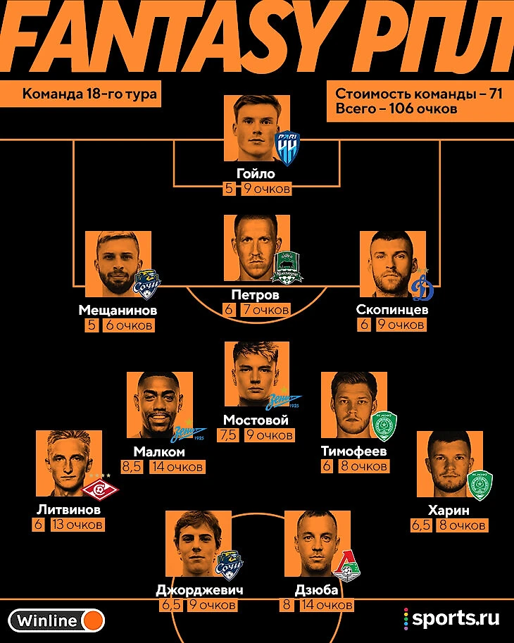 Магия цифр Малкома, чудо Дзюбы – да, но откуда в Fantasy-сборной тура Никита Гойло?