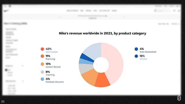 Футбольные товары - это лишь небольшая категория из огромного списка производимой продукции, особенно когда речь идет о структуре доходов. Продукция для бега, тренировок и баскетбола - все это более важные категории товаров, приносящие значительно большее количество продаж, чем футбольные товары. Одна только спортивная одежда по своей значимости почти в десять раз больше, чем футбольные товары ...