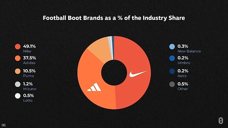 В 2022 году у «Nike» сложилась самая большая доля игроков в пяти ведущих лигах. Примерно каждый второй игрок играет в бутсах «Nike», за ними следуют «Adidas» и «Puma».