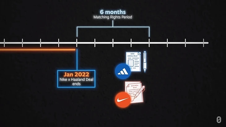 Холанду было 14 лет, когда он впервые подписал контракт с «Nike». Срок его контракта истекал в 2022 году, тем не менее ему разрешили сменить бренд тогда, когда он этого захочет. После истечения срока действия контракта обычно вступает в силу «шестимесячный период согласования прав» / период охлаждения. Это означает, что игроку разрешается сотрудничать с другими брендами только после окончания этого периода. Если конкурирующий бренд делает официальное предложение в этот период, то предыдущему спонсору разрешается его удовлетворить.