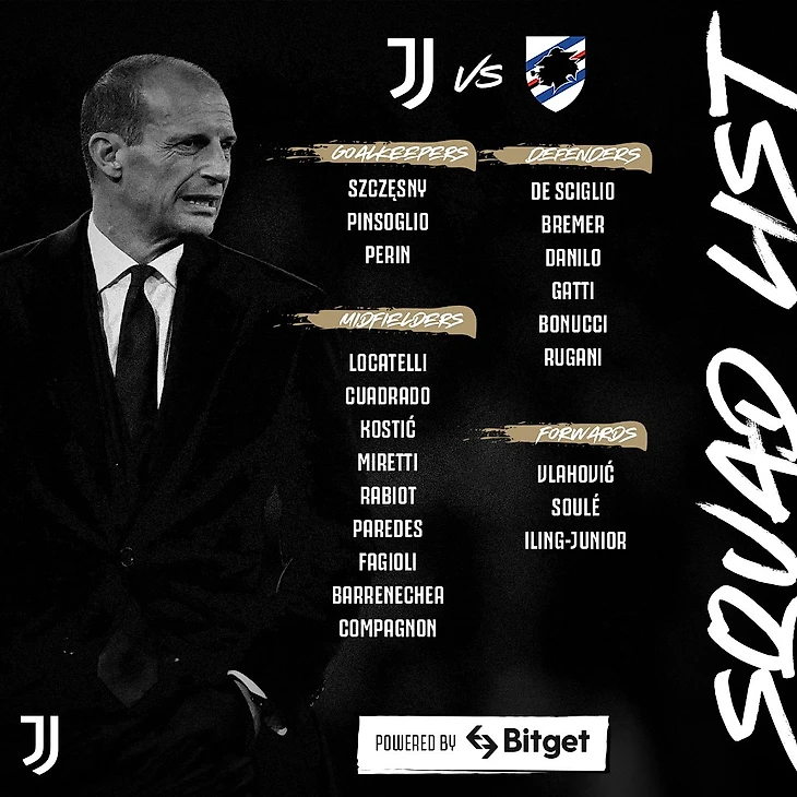 ⚪️⚫️ Заявка «Ювентуса» на матч против «Сампдории» 📜