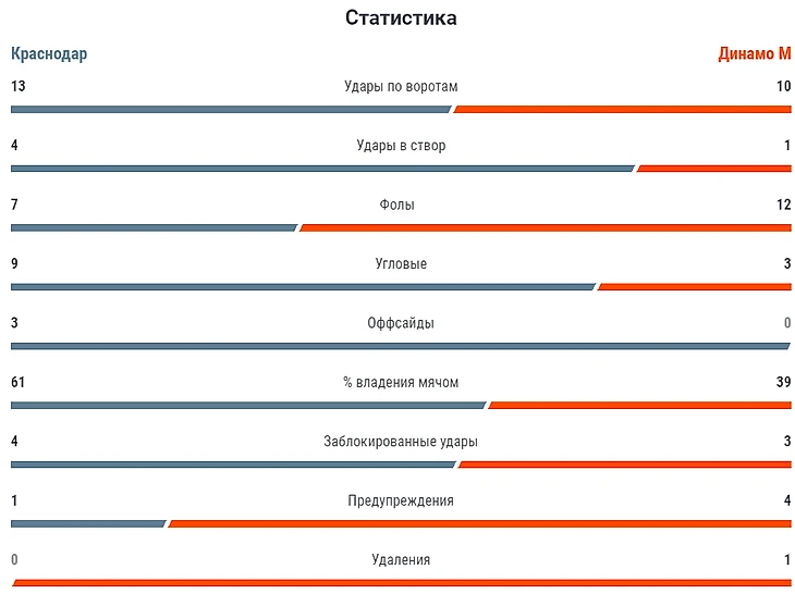 «Краснодар» 3 : 1 «Динамо»🟥
