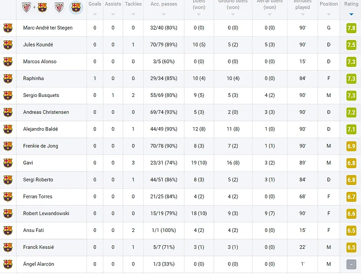Лучший − Тер Стеген, худший − Левандовски. Оценки игроков «Барселоны» за матч против «Атлетика»