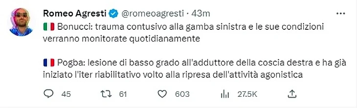 У 29-летнего игрока мышечная травма. Он покинул J Medical, по информации инсайдера Ромео Агрести у Погба незначительная травма приводящей мышцы правого бедра, и он уже начал процесс реабилитации, направленный на возобновление соревновательной деятельности – процесс займет около 20 дней.