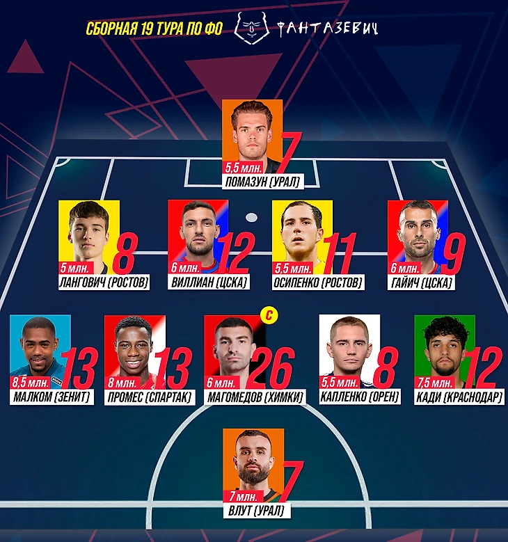 Бутта Магомедов (6 млн, 13 ФО). Полузащитник "Химок" сумел оформить дубль в матче против лидера чемпионата и почти спасти ничью для своей команды. Посмотрим, как он будет играть дальше. Процент владения - 0,1%.