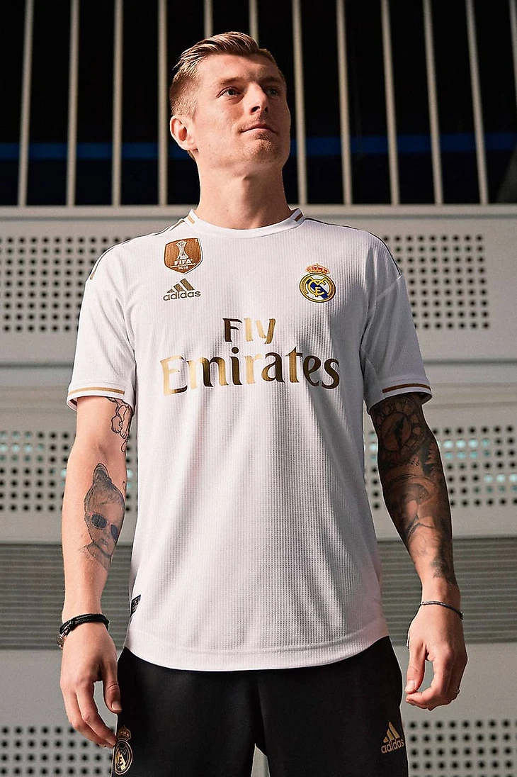 Изюминка этой формы несомненно золотые полосы, которые отсылают нас к медалям соответствующей категории, за которые сражается Мадрид. Любой иной вид металла не интересен. Другая отсылка золотого цвета - это корона. Форма очень элегантная, а сочетание белого и золотого, как будто созданы для Королевского клуба.